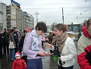 Фото с пикета в защиту зоозащитницы Лидии Поповой (15 апреля 2006 года) Текст центра защиты прав животных "Вита" 15 апреля в 12 часов в Новопушкинском сквере (напротив памятника Пушкину, через дорогу) прошла акция "Россия без жестокости!", посвященная протесту против бесправного положения животных в России. Организатор мероприятия - Центр защиты прав животных "Вита" при содействии других организаций по защите животных. Поводом для проведения пикета стал вопиющий случай, когда москвичка Лидия Попова, вставшая на защиту бездомных животных и пострадавшая за это от рук милиции и ловцов собак, теперь предстанет перед судом. 14 сентября жительница СВАО Лидия Попова стала свидетельницей противоправных действий со стороны Управы "Ростокино" и милиции. В нарушение Постановления Лужкова №819-ПП от 1.10.2002 г. глава управы "Ростокино" вызвал машину с ловцами, которые взялись отлавливать стерилизованных ранее (на государственные деньги) собак. Содействие ловцам оказывала милиция, также вызванная главой управы. В государственной службе отлова диких животных (ГУП СОДЖ) Л. Поповой подтвердили, что этот отлов незаконный, поскольку машину с ловцами они не высылали. Попытки Лидии Поповой встать на защиту закона, и отстоять собак успехом не увенчались. Животные отправились в неизвестном направлении, а Л. Поповой спустя некоторое время была вызвана в местное УВД, где ей сообщили, что против неё возбуждено уголовное дело по трём статьям УК РФ(!), включая "посягательство на жизнь сотрудников правоохранительного органа" (ст. 317УК РФ) и "применение насилия в отношении представителей власти" (ст.318 УК РФ). Суд над Лидией Поповой состоится 18 апреля по адресу: Протопопьевский переулок, д.19, стр.6, где Центр "Вита" также организует акцию протеста. На защиту Лидии Поповой, которой грозит 5 лет лишения свободы, встал адвокат Евгений Черноусов, известный по защите ветврачей "кетаминового дела". Этот вопиющий факт игнорирования местными властями и милицией Постановления Правительства Москвы, заменившего убийство бездомных животных программой стерилизации, далеко не единственный. Центр защиты прав животных "Вита" получает бесчисленное количество жалоб москвичей на продолжающиеся нелегальные отловы и убийство животных. К сожалению, префектуры, управы, и ДЕЗы заняли откровенно враждебную позицию по отношению к первому в России прогрессивному документу в защиту животных-компаньонов (собак и кошек). Так, например, СВАО сдал на утильзавод "Эколог" 98 тонн трупов животных за полгода, в то время как убийство животных в Москве запрещено! Однако, по сравнению со столицей, где общественность и пресса помогают выявлять случаи жестокого обращения с животными, в регионах дело обстоит гораздо хуже. Практика бесконечных отловов бездомных животных с их последующим убийством, имеющая место во всех городах России, лишь усугубляет ситуацию, способствуя размножению животных. Так, например, власти Самары и Ульяновска дошли до того, что призвали горожан убивать бездомных животных за вознаграждение. Ответственность за жестокость по отношению к сельскохозяйственным, пушным, подопытным животным не предусмотрена российским законодательством никак. Вся правовая база России по защите животных на сегодняшний день представлена одной-единственной 245 ст. УК РФ "о жестоком обращении с животными",