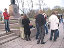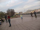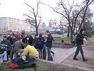 19 апреля 2007, 20:00, Еда вместо бомб на Болоте. Фото Марины Антоновой. Magic hat готовили, чтобы рассказать фаерщикам про Food not boombs, антимилитаризационную инициативу. Текст всеми обожаемой Есёни, написанный ею для нового номера журнала ВМЕСТЕ - №6. Мы будем раздавать журнал завтра, на пятилетии сайта hippy.ru и дне рождения слова ХИППИ. Приходите в сад Эрмитаж к 20:00! Есёня Fire-men Наверное, большинство из вас видели забавно пляшущие огоньки на улицах столицы. Чаще всего на Болотной площади (Болоте) или на площади Яузских ворот. Это как раз те места, где люди огня (ничего общего с сектантами у них нет, они просто очень любят пламя) часто собираются, чтобы покрутить. Вообще, яркое развитие культура фаерщиков получила у нас прошлым летом. Тогда часто можно было встретить на лужайках в парках людей, вращающих цепочки с чем-то тяжелым на конце или носки с теннисными мячиками внутри (для утяжеления) вокруг себя. Я тоже как раз тогда впервые услышала слово «пойстер», которым называли людей с носками. «Пойстер» - это от слова «пой» - так называют то, что крутят. На самом деле теннисные мячики используют только для тренировки для того, чтобы крутить огонь они совсем не подходят. Нет, вы конечно можете попробовать опустить их в керосин и поджечь. Но не думаю, что вам очень понравится запах горелой резины. Так что для того, чтобы крутить огонь, вам придется сделать специальные, боевые пои, из асбеста или кевлара сложить материал в кубики примерно 6*6 см и прикрепить к цепочке с петельками для пальцем на противоположном конце. В Интернете сейчас можно легко отыскать множество сайтов, где выложены видео-уроки, по которым можно быстро и легко научиться движениям. Хотя мне кажется, что гораздо приятнее просто прийти на Болото, познакомиться с кем-нибудь и начать разучивать элементы вживую, глядя на человека уже умеющего и обсуждая с ним нюансы и возникающие сложности. Фаерщики - это люди, которые связаны не только тусовкой. Это целая культура. Почти все друг друга знают, часто ходят куда-нибудь вместе. Где-то было написано, что пойстеры в большинстве своем люди творческих профессий. Отчасти это так. Среди них можно встретить музыкантов, журналистов, философов, дизайнеров. Хотя на окрутоны ходят много людей совершенно нетворческих профессий, которые отдыхают от всего и погружаются в своеобразный танец с огнем после утомительного дня на работе. Удивительно, насколько же огонь очищает! Его шепот и пение - они завораживают. Растворяют. Можно просто сесть рядом с танцующими и бесконечно долго смотреть на мелькающие огоньки. Особенно под звуки барабанов. Весной и летом барабанщики с удовольствием приходят на места покрутонов, тогда площадь становиться похожей на какое-то древнее место, где происходят мистические обряды. Кстати, можно заметить в руках у фаерщиков не только пои, но и длинные палки, горящие с 2 концов (шесты) или по 2 короткие палки (два шеста), огненные веера, горящие обручи и веревки, булавы для жонглирования. К тому же многие не только крутят пои, но и выдувают огонь. Поэтому площадь постоянно освещается яркими вспышками - фаерболами, которые могут достигать 2-3 метров в высоту. Конечно, порой это опасно. Сначала необходимо проверить направление ветра и качество керосина. Хотя это все равно опасно, даже при соблюдении всех правил техники безопасности. Но ведь ощущен