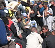 3.06.2007 Одна из воскресных московских фнб-акций. Мagic hat (Женя, Нуар, Дашка из Курска и я) привезли рис с капустой, морковью и луком (25 kg), 7 кг хлеба, 12 л чая, Массовики (Сну, Кош, Пастухов и еще трое, имен которых я не знаю) приготовили сладкий плов с орехами и сухофруктами (40 kg) и 10 л компота. Покормили около 200 человек. В акции участвовало около 15 активистов, в том числе ребята из "Медиков" (Саша раздавал листовки), "МОШ" (Ка купила страждущему носков) и "Мама, почитай Кропоткина". Было солнечно. Всё прошло отлично - если не считать плакавшую Дашку, утерявшую 1 июня на Сосне документы и разговоров про гей-парад. Самым последним приехал сонный Билли и рассказал, что наши наклейки по-прежнему висят на кассе Джаганната. [1] [2] [3]