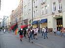 25.05.2007 Шествие за сексуальную свободу и права людей гомосексуальной ориентации Видео 4Mb, скачано с индимедии Любава пишет: 25 мая в в 19:30 Москве состоялось анархическое Шествие за сексуальную свободу. Три десятка человек с фаерами, черно-красными флагами, флагом прайда, флагом ЛАф, рейнбоу-флагом и двумя шестиметровыми баннерами "Любовь - не преступление" и "Нет дикриминации ЛГБТ", метровым баннером "Ударим гневом социальным по предрассудкам сексуальным" прошли мимо мэрии до Кузнецкого моста, скандируя: "Гомофобия - это фобия", "Гомофобия - это болезнь", "Выше, выше черный флаг! Го.в..о - главный враг", "Какая разница, кого любить", "Нет дискриминации по сексуальной ориентации", "Дружба, любовь - наша цель. Пусть чиновник не лезет в постель." Самое удивительное в акциях такого типа - краткость. Взрослые серъезные люди целый месяц проводят миллион суперсекретных совещаний, в обстановке повышенной секретности утверждают кричалки и тексты листовок затем, чтобы около получаса позажигать. Отлично повеселились. Савва пишет: Многих людей по поводу предстоящих акций в поддержку ЛГБТ беспокоило в последнее время фсб - звонили, вламывались в квартиры бодрыми тройками, ловили в городе и приглашали к сотрудничеству. Но они не узнали того, чтобы позволило бы нам помешать - спасибо св.Фредди и св.Эбби. Анархисты рассредоточились по Москве и в условленный час появились около МВД на Тверской, прошли с анархо-коммунистическими, лафовскими и рейнбоу-флагами, фаерами, плакатами, мегафоном мимо гомофобной мэрии, запретившей гей-парад в обход конституции. Шествие завершилось недалеко от Лубянки. Смеагорл: в акции участвовали автономы, хипы, лафовцы, фнбшники, сквоттеры, антифа, веганы и еще разные клевые люди. Наибольшее впечатление на меня произвела девушка-выпускница, которая присоединилась к шествию. Она увидела наши лозунги из окна Макдака и решила поддержать нас, так как сама была представительницей лбгт. Вот что такое самоорганизация и социальное чутье масс! Пресс-релиз: 25 мая в Москве состоится шествие за сексуальную свободу и права людей гомосексуальной ориентации. Цель шествия – поддержка требований ЛГБТ-сообщества на проведение гей-прайда, выступление против дискриминации по половому признаку и по признаку сексуальной ориентации. Вот уже второй год подряд представители российского ЛГБТ-сообщества (лесбиянки, геи, бисексуалы, транссексуалы) стараются привлечь внимание общественности к проблеме сексуальной дискриминации, пытаясь провести в Москве свою демонстрацию, известную под не совсем точным названием «гей-парад». Вопрос о гей-параде будоражит почти все слои населения – московские власти клянутся не допустить проведения в столице «сатанинского действа», всевозможные политические группировки, от ультра-фашистских до правоверно-сталинистских, призывают сторонников выйти на улицы для противодействия, попы всех «традиционных конфессий» налагают проклятия на «извращенцев», да и простые граждане не остаются в стороне от обсуждений злободневного вопроса. Много говорится о «здоровье нации», «демографической проблеме», выносятся предостережения об опасности «падения нравов». Но давайте попробуем разобраться, что действительно опасно для общества в решении извечного «сексуального вопроса». В голове у каждого человека полно стереотип