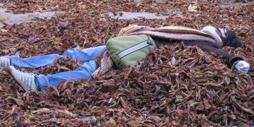 Вот типичное лежбище тюленей. Длинная правая нога тюленя не влезла в кадр.