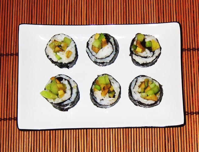 Вторые блюда Фаршированный перец Отварите рис. Отварите отдельно соевый фарш. Смешайте рис и сою, добавьте измельченный болгарский перец, лук, помидоры, грецкие орехи, изюи, масло, соль, карри. Фаршируйте болгарский перец, устанавливайте в кастрюле крышечками вверх, варите минут 10, пока не сварится перец. Можно подавать с соевым майонезом. Голубцы Сделайте начинку как для фаршированных перцев (см.выше).Чтобы сделать голубцы, листья капусты надо подержать в кипятке, пока они не станут гибкими. Заворачивайте начинку в листья капусты, укладывайте в кастрюле, варите с лавровым листом, солью и черным перцем до тех пор, пока капуста не будет готова. Можно подавать с соевым майонезом или лимонно-томатным соусом. Соус приготовляется из помидор, мелко нарубленной зелени, растительного масла и лимонного сока. Деруны Рецепт Пацифики. Сырой картофель очистить и измельчить. Выложить в большую миску, слить картофельный сок. Измельчить 2-3 средние луковицы (в зависимости от количества картофельного фарша) и добавить в миску. 1-2 столовые ложки муки (в зависимости сами знаете от чего) добавить в картофельно-луковый фарш. Посолить. Перемешать. Жарить как оладьи. (Горелые никуда не годятся). Помидоры фаршированные Подготовить помидоры - срезать крышечки и достать сердцевину. Крышечки пригодятся. Приготовить фарш: измельчить серединки помидор, вареную картошку (или рис), добавить чеснок, грецкие орехи и растительное масло. Начиненные помидоры закрыть крышечками и запекать в духовке до тех пор, пока треснувшая корочка помидор не зарумянится. Перед подачей полить чесночным соусом: подсолнечное масло, смешанное с тертым не мелкой терке чесноком и перцем. Кабачки фаршированные Молодой кабачок нарезать кружочками, посолить, обжарить на растительном масле. Выложить обжаренные ломтики в форму послойно с начинкой из отварного риса (3/4 стакана), нарезанной и обжаренной луковицы, отварной и нарезанной кубиками моркови. Сверху положить слой кабачков, полить маслом и тушить в духовке 10-15 мин. Цветная капуста под белым соусом Цветную капусту (1 большой или 2 небольших кочана) обмыть, разобрать на кочешки и отварить в подсоленной воде. Затем откинуть на сито, дать стечь воде и уложить на тарелку. Слегка поджарить муку (2 ст. ложки) на растительном масле (3 ст. ложки), добавив сахар (1 ч. ложка). Развести капустным отваром и варить на медленном огне 5-6 мин, полученным соусом залить капусту. Пюре из щавеля Щавель (1 кг) перебрать, промыть и отварить в небольшом количестве кипящей подсоленной воды с добавлением растительного масла (4 ст. ложки). Дать стечь воде и протереть через сито. Макароны с соей Макароны и соевый фарш залить кипящей водой, варить с лавровым листом, душистым и черным перцем до готовности макарон. Добавить, масло, соль, измельченный репчатый лук и помидоры. Рис с кукурузой Отдельно отварить в соленоей воде рис и кукурузу, перемешать, подавать горячим. Это главное блюдо вегана.